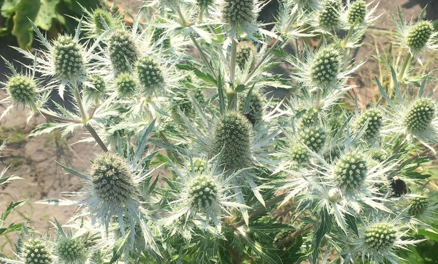 ✔ Striking white, spiky blooms with silvery-green bracts